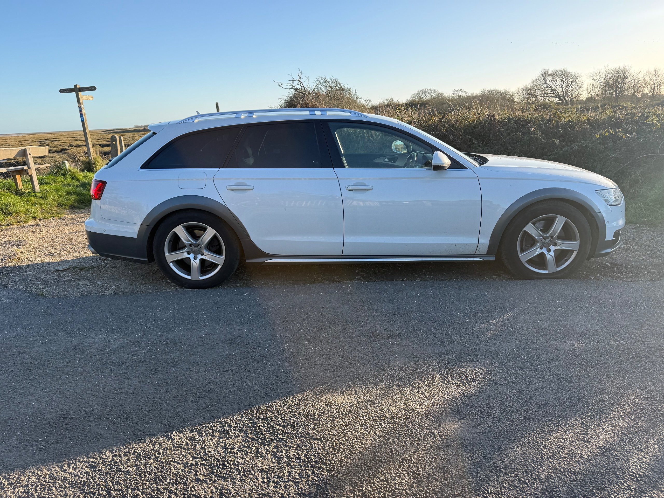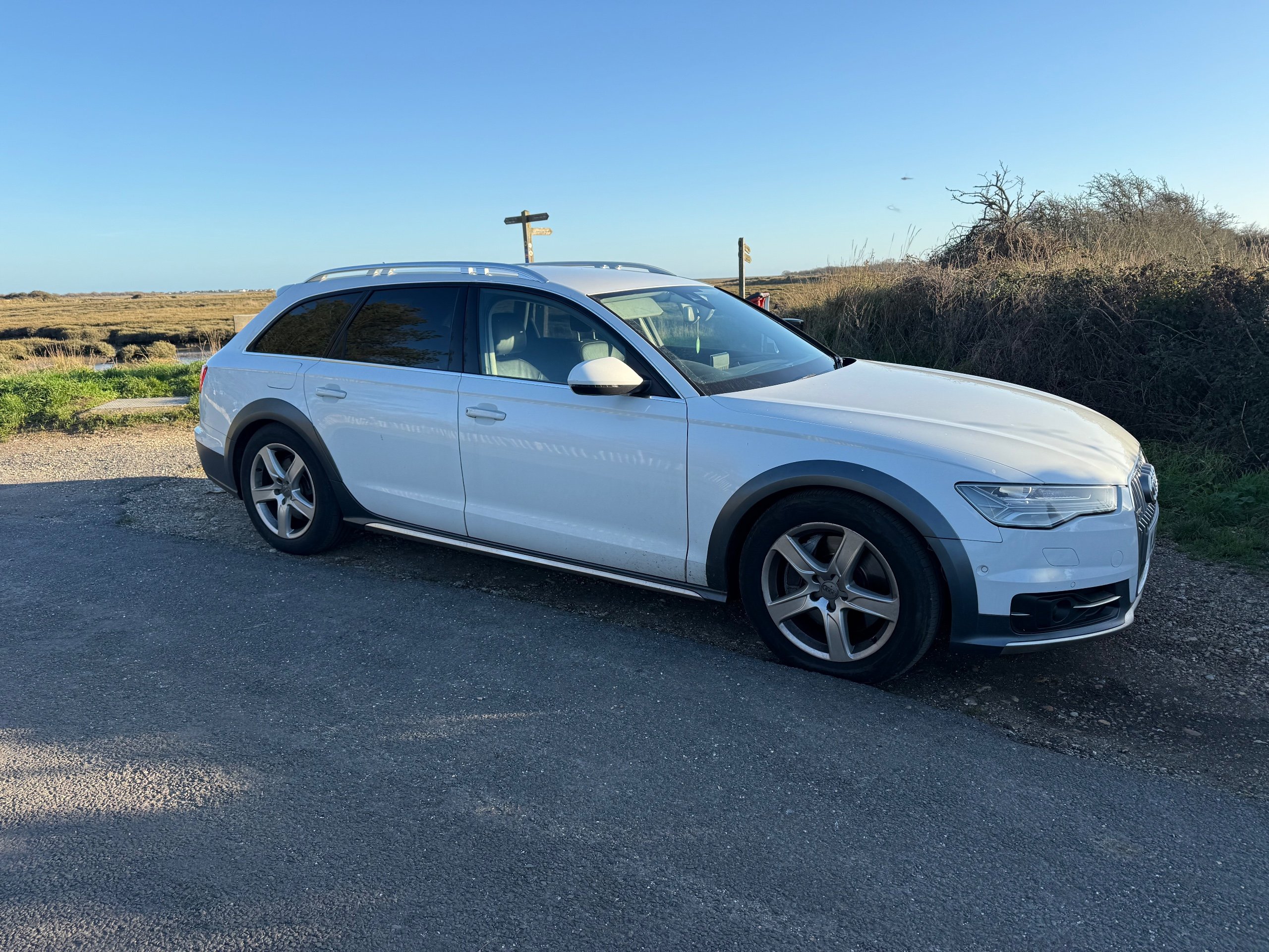 Very rare Audi a6 allroad full adjustable air suspension. Off road capability and the looks to match This 2016 Audi A6 Allroad is a reliable estate car with only 73000 miles on the clock, powered by a petrol engine. It comfortably seats 5 people and comes with an MOT that expires on 26/12/2026, providing peace of mind for years to come. The A6 Allroad is known for its spacious interior and rugged capabilities, making it perfect for both urban and off-road adventures. With the reputable Audi brand behind it, this vehicle offers a smooth and enjoyable driving experience, while also delivering on style and practicality.